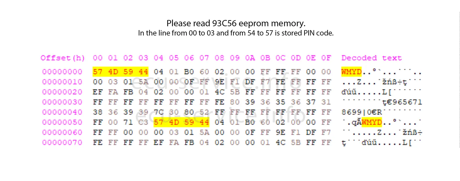 Please write PIN code to emulator eeprom according example: