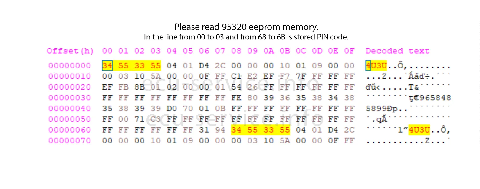 Please write PIN code to emulator eeprom according example: