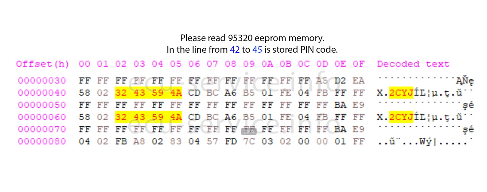 Please write PIN code to emulator eeprom according example: